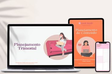 Três planners exclusivos para te auxiliar no planejamento de conteúdo das suas redes sociais e no seu planejamento diário, semanal, mensal e trimenstral.